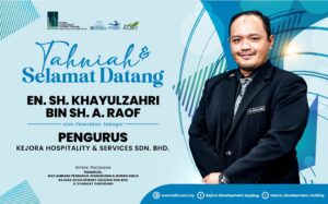 Kumpulan Kejora Development Holding Sdn. Bhd. (KDHSB) telah mengadakan Sesi Briefing dan Lapor Diri Pengurus Subsidiari yang berlangsung pada 6 Ogos 2025 bertempat di Bilik Mesyuarat Utama KDHSB. Selamat datang diucapkan kepada Encik Sh Khayul Zahri dan Cik Siti Fazueri di dalam keluarga besar kumpulan Syarikat.